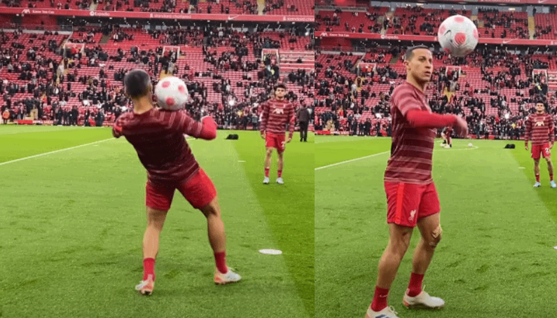 [경기중 워밍업을 하는 축신 티아고 알칸타라ㄷㄷㄷㄷ] 오우... 공이 몸에 달라붙네ㄷㄷㄷㄷ