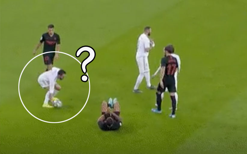 [옐로 카드 받은 카르바할의 이상한 행동.gif] 경기 중 미식축구하는 카르바할ㅋㅋㅋ 저 행동으로 옐로 카드 받고 카드 누적으로 다음 경기 결장이라네요