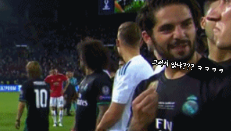 슈퍼컵 시상식 직전 속마음 딱 걸린 이스코.gif