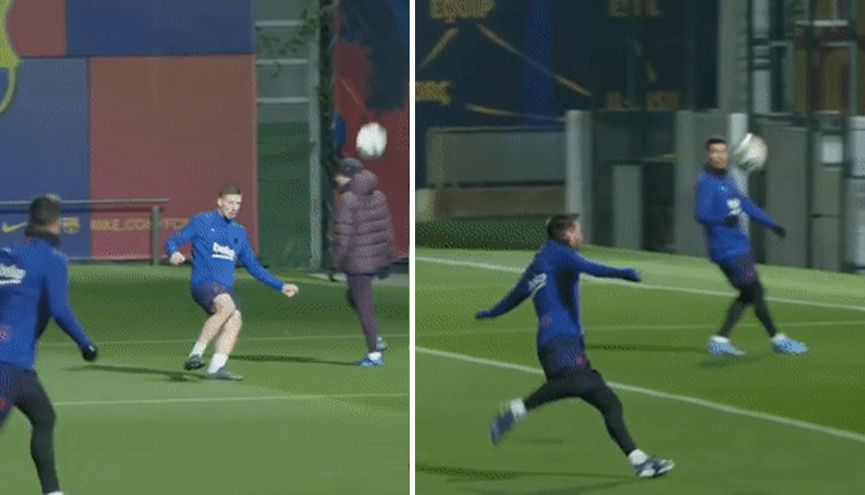 훈련중 나온 메시의 정확한 오른발 발리슛ㄷㄷㄷㄷ.gif