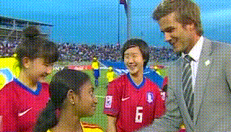 [베컴을 보고 수줍어하는 여자축구 선수들.gif] 2010년 U-17 여자월드컵 당시 베컴을 보고 수줍어하는 대한민국 여자 선수들ㅋㅋㅋㅋㅋ 선수들은 너무 커엽고ㅋㅋㅋ 베컴은 미모 실환가...???ㄷㄷㄷ 출처 : 아이라이크사커