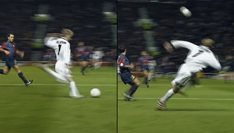 데이비드 베컴이 보여준 '러닝 크로스'.gif