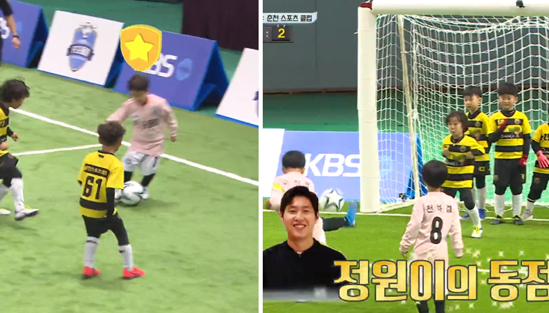 어제자 슛돌이에서 나온 '환상적인 드리블&프리킥'.gif