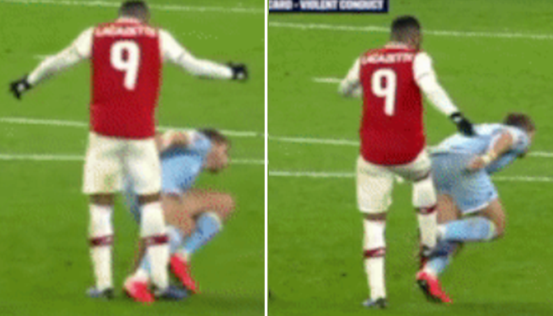 아무런 경고도 없이 넘어간 논란의 라카제트 파울장면.gif