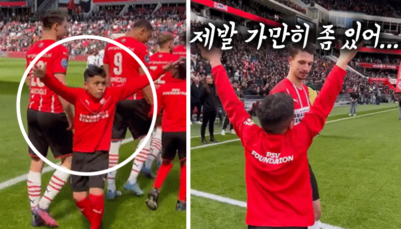 ['미래의 린가드?' 선수도 당황하는 씬스틸러 에스코트 키즈] ㅋㅋㅋㅋㅋㅋㅋㅋㅋㅋㅋㅋ거의 선수보다 더 격하게 몸을 푸네ㅋㅋㅋㅋㅋ PSV 선수도 당황했지만 귀여운듯ㅋㅋㅋㅋㅋㅋ