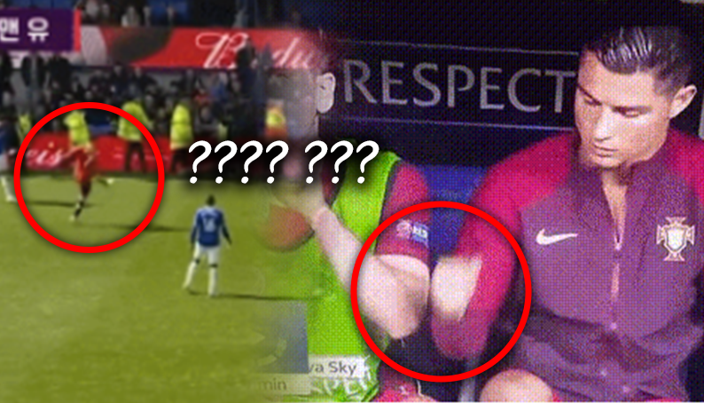 ['왜 저러지...??' 이해 안가는 호날두의 행동들] 가장 최근 논란의 행동 관중석으로 풀파워로 슛하는 호날두 날카로운 걸로 추정되는 물건을 손에 쥐고 동료 허벅지 찌르는 호날두 진짜 왜저러는거지....?????