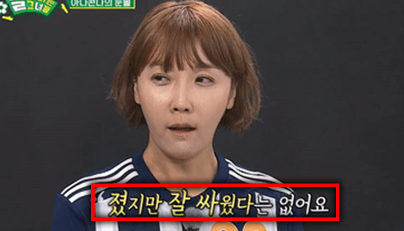 ["스포츠 진리"골때녀 아나콘다 최은경의 진심] 아나콘다는 액셔니스타와의 경기에서 선제골을 넣었지만 동점골을 먹히며 결국 승부차기에서 패배함... 최은경 : 졌지만 잘 싸웠다는 없다. 이겨야 되는 것이다. 졌잘싸는 사실 관중이나 주변사람들이 해줄 수 있는 말이지 선수들 본인에게 졌잘싸는 없는듯....