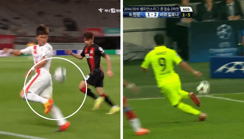 ["수아레즈를 보는 듯한"...어제 K리그에서 나온 환상적인 터치] 강원fc 정승용 선수의 환상적인 터치 +) 수아레즈의 터치 출처 : 뉴락싸_아이유