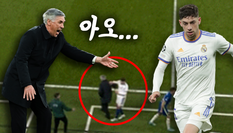 "이 타이밍만 노렸다?"안첼로티 무릎 공격하는 발베르데