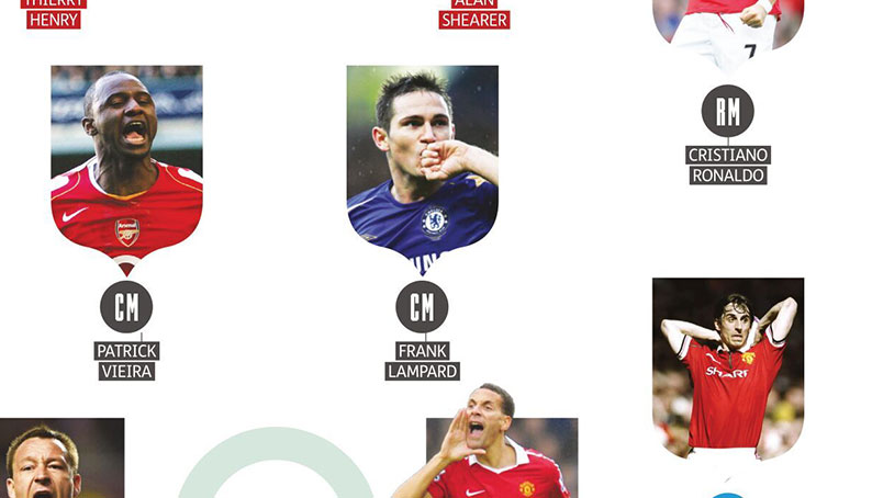 퍼거슨 감독 | 앙리, 시어러, 긱스, 호날두, 비에이라, 램파드, 애슐리 콜, 존 테리, 리오 퍼디난드, 개리 네빌, 슈마이켈