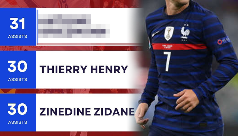 ["앙리,지단 제쳤다" 프랑스 새로운 왕] 최근 경기에서 2도움을 추가하면서 지단 앙리를 제친 그리즈만.....ㄷㄷ..... 그 와중에 음바페 지루 골 미쳤네.......