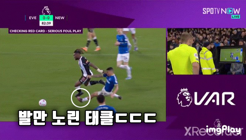 "VAR후 퇴장"...에버튼에서 나온 정확히 발만 노리는 태클