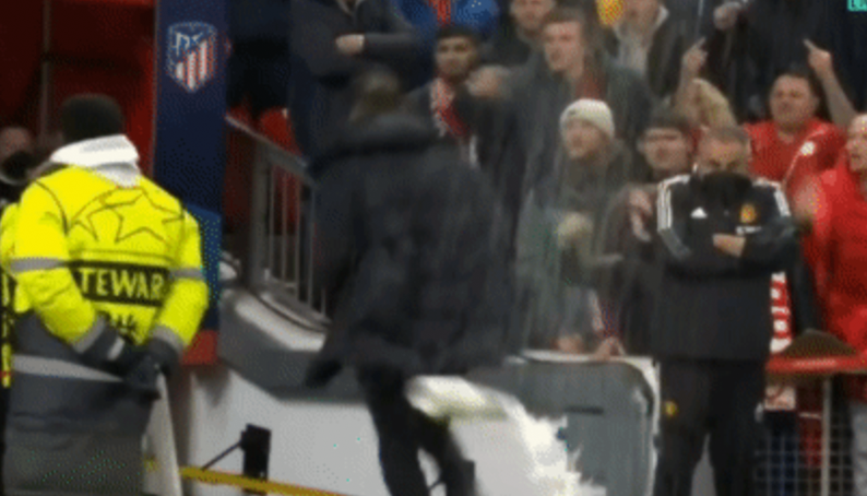 '비매너의 끝' 경기종료 후 시메오네에게 물건 투척하는 맨유팬들