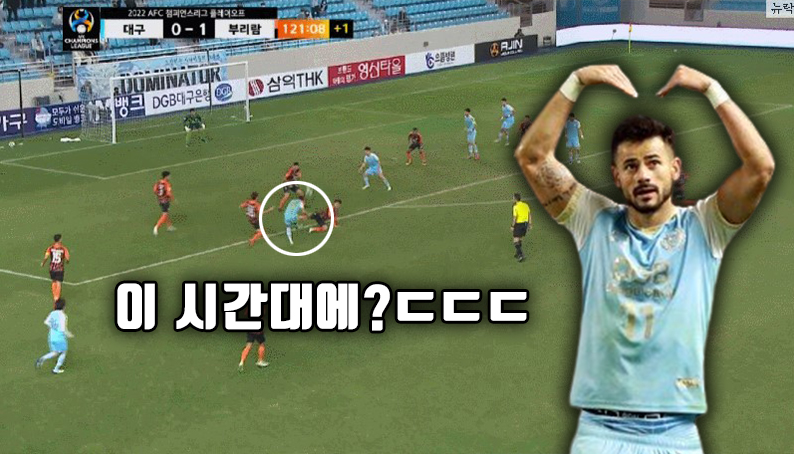 ["이 시간에?"...121분 챔스로 가는 희망을 살리는 세징야의 득점] 이 득점으로 인해 승부차기까지 가서 승리한 대구. 이번 승리로 아시아 챔피언스리그 본선무대에 진출!!! 출처 : 뉴락싸_cream