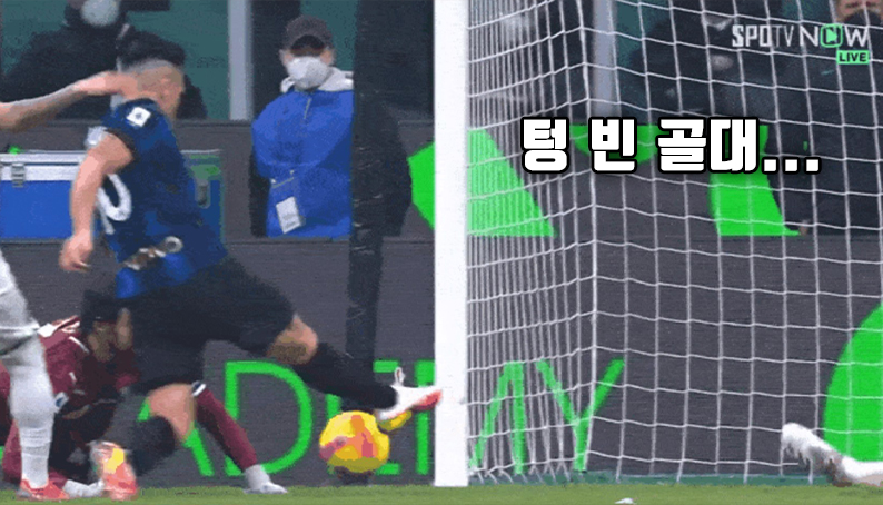 [골키퍼 없는 골대에 넣지를 못하는 라우타로.gif] 바로 앞에서 골 못넣는 라우타로 마르티네즈..... 출처 : J.세자르