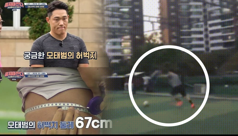 ['허벅지 둘레 67' 모태범의 슛팅 파워 수준.gif]