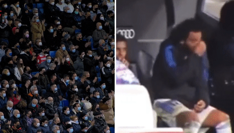 베르나베우 홈팬들에게 박수받고 눈물 흘리는 마르셀루.gif