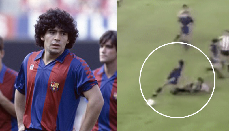 [축구 역사를 바꿔놓은 백태클ㄷㄷㄷㄷ.gif] 바르샤 시절 마라도나에게 백태클하는 빌바오의 고이코에체아 이걸로 마라도나는 발목 골절되서 7개월 결장하고 복귀했는데 또 빌바오와 난투극. 그리고 나폴리로 떠나버림. 수술 들어가는 직전까지 생중계 이제는 우리나라 해축팬들도 많이들 아는 빌바오전 패싸움 사건. 폭발한 마라도나의 무쌍난무. 그리고 나폴리 입단식. 만약 사건이 없었다면 마라도나는 바르샤의 레전드가 될뻔한.. 중소클럽 나폴리의 우승은 없었을...