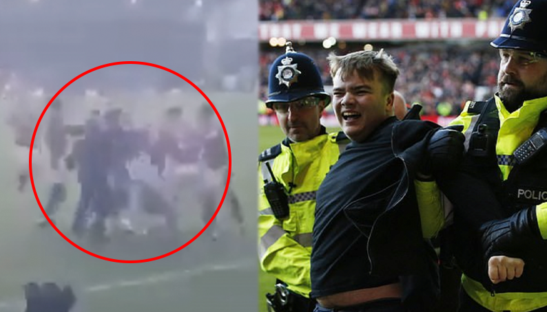 3:0으로 끌려가자 경기장 난입해서 노팅엄 선수 폭행하는 레스터팬.gif