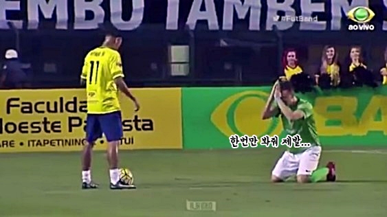 [경기 중 네이마르에게 애원하는 수비수.gif] 자선 경기에서 네이마르에게 무릎을 꿇은 수비수 과거 브라질 샤피코엔시 축구팀 참사를 후원하기 위해 열린 자선경기가 열림 팬들을 즐겁게 하기 위한 자선경기라서 골 폭격으로 '팀 네이마르'가 13-9로 '팀 호비뉴'로 승리한 경기 그중 명장면으로 뽑히는 ㅋㅋㅋ 제발 한번만 봐달라고 애원하는 수비수ㅋㅋㅋㅋㅋㅋㅋㅋㅋ 네이마르는 아랑곳하지 않고 화려한 개인기로상대 수비수를 간단하게 제쳐버림ㅋㅋㅋㅋ