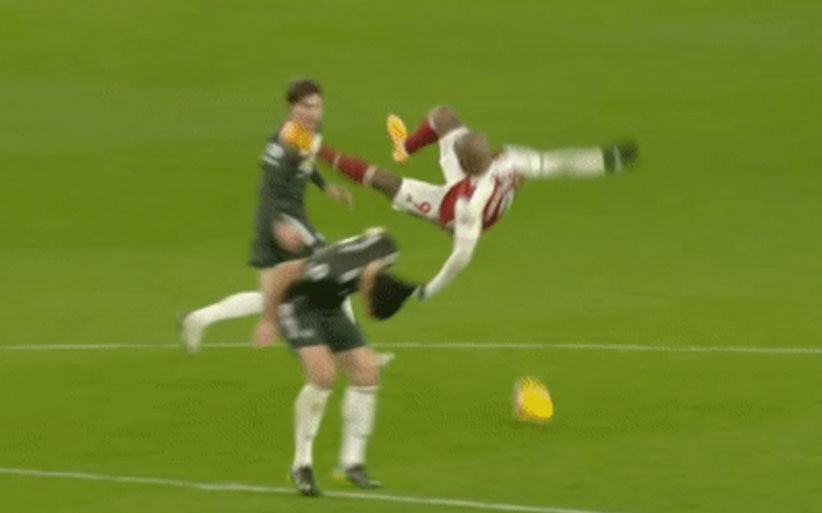 누구 잘못? 논란 중인 매과이어-라카제트 충돌 장면.gif