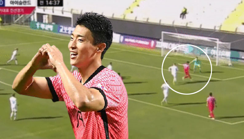 ['완벽한 전개' 조규성의 선제골 장면.gif] 조규성 A매치 데뷔골!!