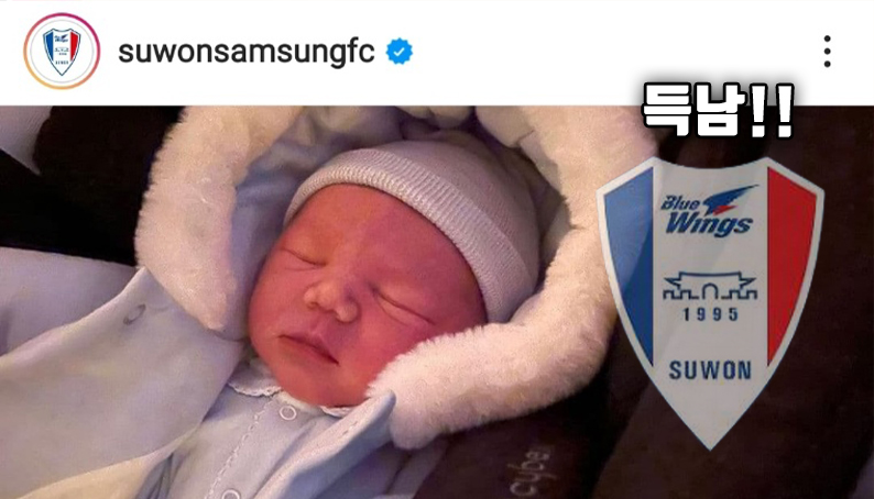 [아빠보다 아들이 먼저 올라온 수원 삼성 인스타.jpg] 오피셜이 안떴는데ㅋㅋㅋㅋㅋ불투이스 득남을 축하해주네ㅋㅋㅋㅋ 거피셜인듯 https://www.instagram.com/p/CYaYHZ-F6BP/ 수원 삼성 블루윙즈 인스타