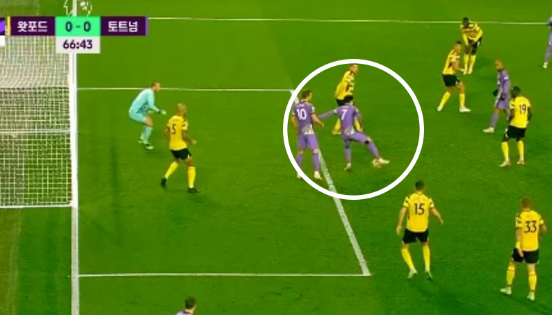 센스가 돋보였던 손흥민의 아까운 백힐 슈팅.gif