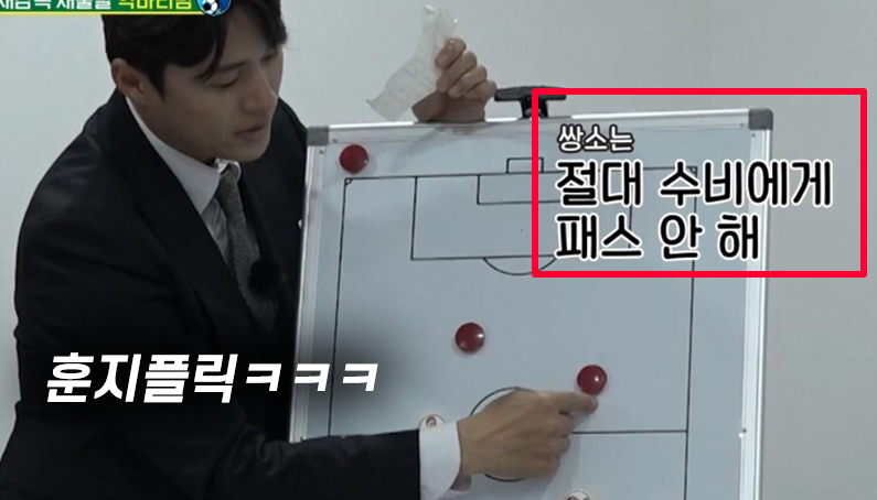 ['골때녀 논란' 와중에도 빛났던 백지훈의 전술ㄷㄷ.gif] 1) 일단 이천수 감독의 측면쪽 세트피스 전술에 대해 다 파악하고 대비를 함 지난 시즌은 이천수 감독이 저 지역에서 측면쪽으로 길게 넣어주는 패턴으로 재미를 많이 봤었는데 이번엔 그걸 막는 백지훈의 전술 2) 쌍소가 서로에게만 패스하고 백패스해서 빌드업하지 않는다는걸 간파하고 둘 사이에 서있어서 인터셉트하는 전술을 쓰는 백지훈 그래도 내보냈다면 백지훈의 기가막힌 전술과 송소희의 5:0 에서 포기하지않고 따라가는 해트트릭으로 더 좋은 장면들이 나왔겠지만 제작진의 잘못으로 빛바랬던 회차여서 너무 아쉬움...... 출처 : 뉴락싸_하루아침