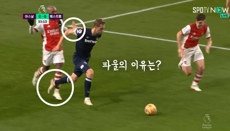 [해설도 이해하지 못한 오늘자 파울 장면.gif] 그냥 대충 보면 자기 발에 걸려 넘어지는 것 처럼 보임. 해당 장면에서 해설도 이게 왜 파울이냐고 의문을 남김.. 그런데.. 느리게 자세히 보면, 자기 발에 걸리기 전 왼발을 보면 라카제트 왼발에 살짝 걸리는 것 처럼 보이기도 함.. 만약 이걸 봤다면 진짜 심판 시력 미친거 아님?ㄷㄷㄷㄷ +) 어쨌든 라카제트가 팔을 잡아서 파울이라는 의견도 있네요!