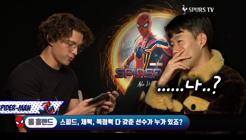 톰 홀랜드 X 손흥민 인터뷰 캡틴아메리카 - 요리스(손흥민 픽) 호크아이 - 케인(손흥민 픽) / 손흥민(톰 홀랜드 픽) 토르 - 무사 뎀벨레(톰 홀랜드 픽) 헐크 - 로메로(톰 홀랜드 픽) 로키 - 레길론(손흥민 픽) ㅋㅋㅋㅋㅋㅋㅋㅋㅋㅋㅋㅋㅋㅋㅋㅋㅋㅋ스파이더맨 - 손흥민(손흥민의 머쓱한 동의ㅋㅋㅋ) 영상 풀로보면 톰 홀랜드 진짜 찐팬인게 느껴짐ㅋㅋㅋㅋ바로바로 나옴ㅋㅋㅋㅋ 닉퓨리는 레비...?? 한국어 자막 영상 : https://tv.naver.com/v/24075875