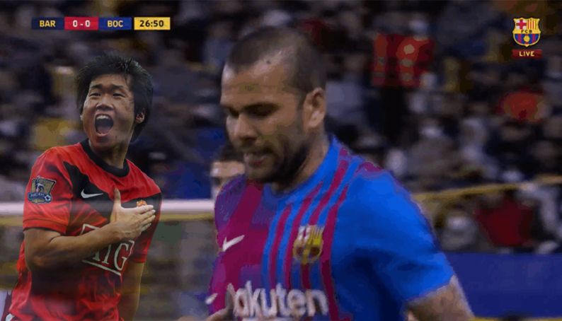 박지성이 보이는 바르셀로나가 답답한 알베스.gif