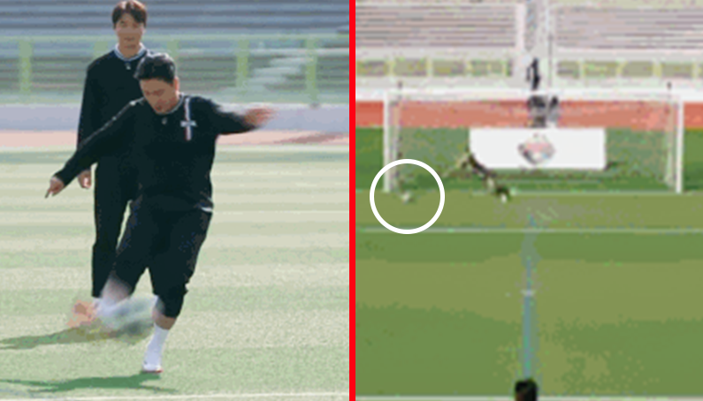 [최근 안정환의 킥력 근황.gif] 뭉찬 멤버들은 못넣고 안정환은 더 뒤에서 저 코스로 찼다고....ㄷㄷ....(이동국조차 못넣었음) 저 코스를 어떻게 막냐 ㄷㄷ......