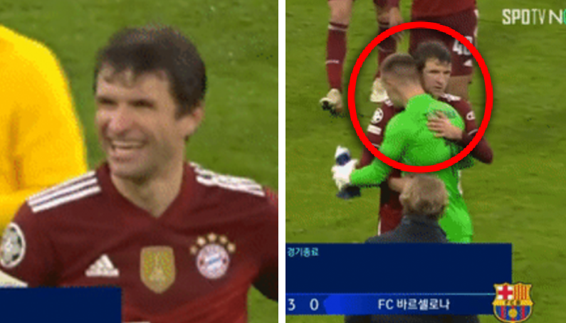 [바르셀로나 털어버리고 표정관리하는 뮐러.gif] 같은 독일 국대 선수여서 그런건가 아무튼 결과는 처참했지만 상대를 향한 예의는 지켜주는게 진짜 멋있네요.....ㄷㄷ....