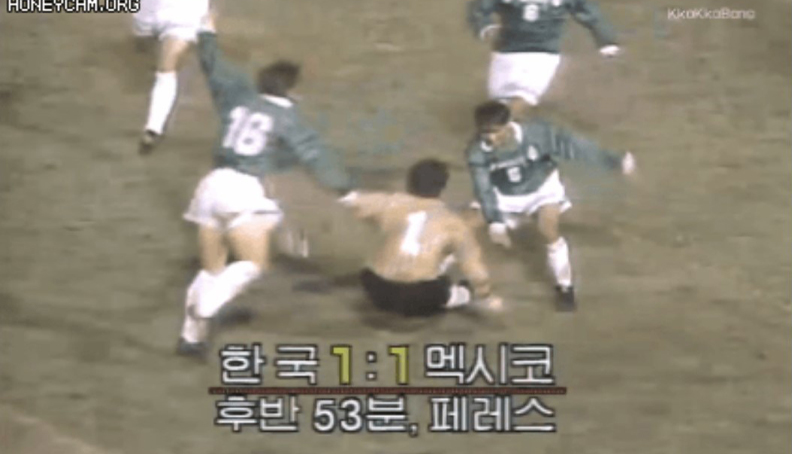[최용수와 상대 골키퍼의 버저비터 골ㄷㄷㄷ.gif] 정규시간 종료 1분 전 고종수의 왼발 프리킥 - 최용수의 헤딩골 추가시간 8분에 나온 멕시코 골키퍼의 극장골ㄷㄷㄷㄷ 아 경기는 96년 초의 올림픽 대표팀 멕시코전입니다. 96 애틀랜타 올림픽 대비로 미국에서 했던 경기입니다.