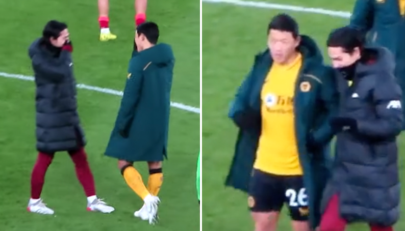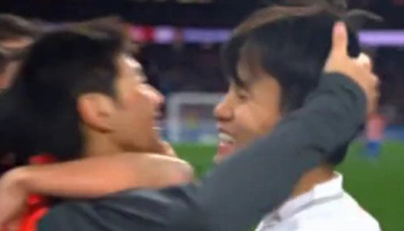 오랜만에 재회해서 친목나누는 황희찬과 미나미노.gif