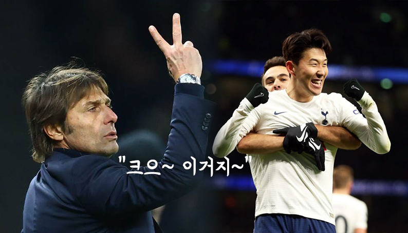 '리액션 맛집' 콘테, 손흥민 골당시 반응ㅋㅋㅋㅋ.gif