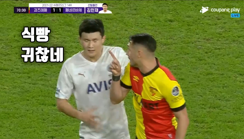 [신경전 도중 식빵 날린듯한 김민재.gif] 우리 민재는 꿇리지 않지ㅋㅋㅋ 그냥 귀찮아 하는 듯ㅋㅋㅋㅋ