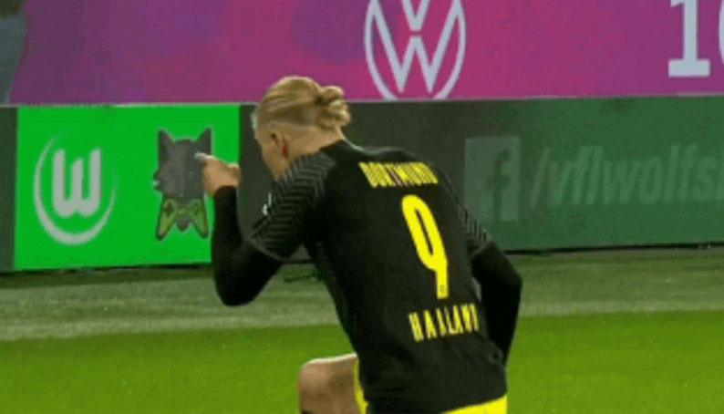 상대팀 팬과 함께한 홀란드의 세레머니.gif