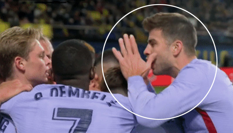경기 중 바르셀로나 선수들을 독려하는 고참 피케.gif