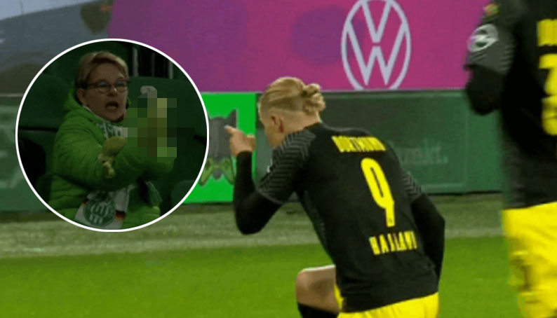 [상대팀 팬과 함께한 홀란드의 세레머니.gif] 카메라맨 센스 ㅋㅋㅋㅋㅋㅋㅋㅋㅋㅋㅋ 아주머니 주먹 감자ㅋㅋㅋ