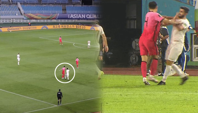 중계화면에 잡히지 않았던 김민재와 시리아 선수의 신경전.gif