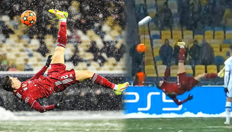 눈까지 와서 더 멋있는 레반도프스키의 환상골.gif