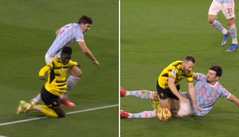 경고누적으로 퇴장당한 매과이어의 위험한 플레이ㄷㄷㄷ.gif