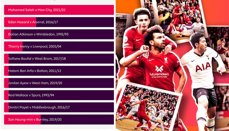 PL 공홈에서 진행 중인 '최고의 득점 투표'.. 손흥민도 후보에!!