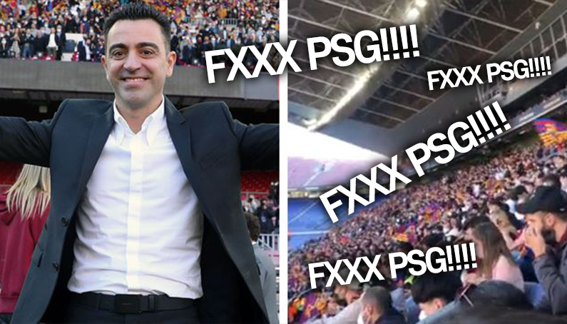 [사비의 바르셀로나 취임식에서 나온 'FUCK PSG'] https://twitter.com/9Campnou/status/1457699255083208706 기사원문 : https://tribuna.com/en/news/football-2021-11-08-barcelona-fans-shout-f-psg-during-xavis-presentation-ceremony-as-new-manager/