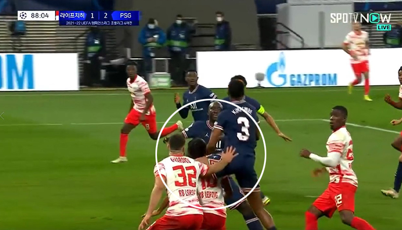 오늘자 90분에 PK내준 킴펨베의 플라잉니킥.gif