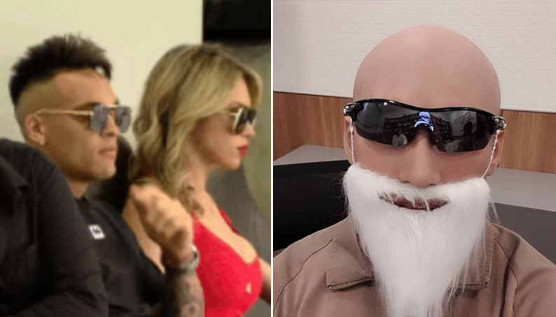 관중석에서 경기를 지켜보는 라우타로 옆에 '김계란'.gif