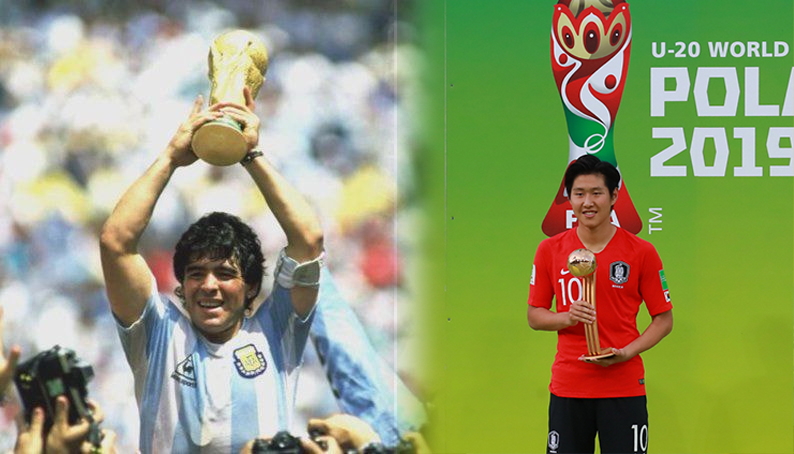 [우상 마라도나와 소름돋게 똑같은 세트피스 성공한 이강인.gif] 어릴적부터 우상으로 뽑았던 마라도나 그리고 본인의 우상이었던 마라도나와 정말 비슷한 세트피스를 성공해 화제가 됐던 이강인의 패스ㄷㄷㄷㄷ 득점한 장면까지 싱크로율이 굉장히 높아보이네요!! U-20 월드컵에서 엄청난 활약으로 우상 마라도나, 메시와 같은 골든볼을 수상했던 이강인!! 그리고 정말 특별한 점은 축구 역사상 18살에 u-20 월드컵 골든볼을 받은 선수는 '마라도나, 메시, 이강인'으로 단 3명 뿐이라고 하네요ㄷㄷㄷㄷ