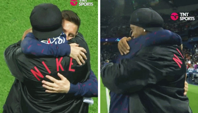 존경하는 선수에게 달려가는 메시.gif